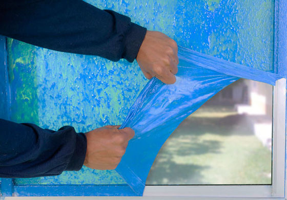 Ontworpen om bescherming van de residu de vrije oppervlakte onder de meest veeleisende toepassingen te bieden. Het ideaal voor vensterbescherming voor het maskeren van overspray tijdens bouwconstructie en UVweerstand. Van het de Filmvenster van het vensterschild beschermt de Zelfklevende maskerende film vensters, polijsten de spiegels en hoog oppervlakten van het bewegen van schade en de verf oversprays.