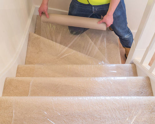 Onze tapijt beschermende film kan 45-60 dagen op het tapijt duren. Tough genoeg om te lopen en te werken op.